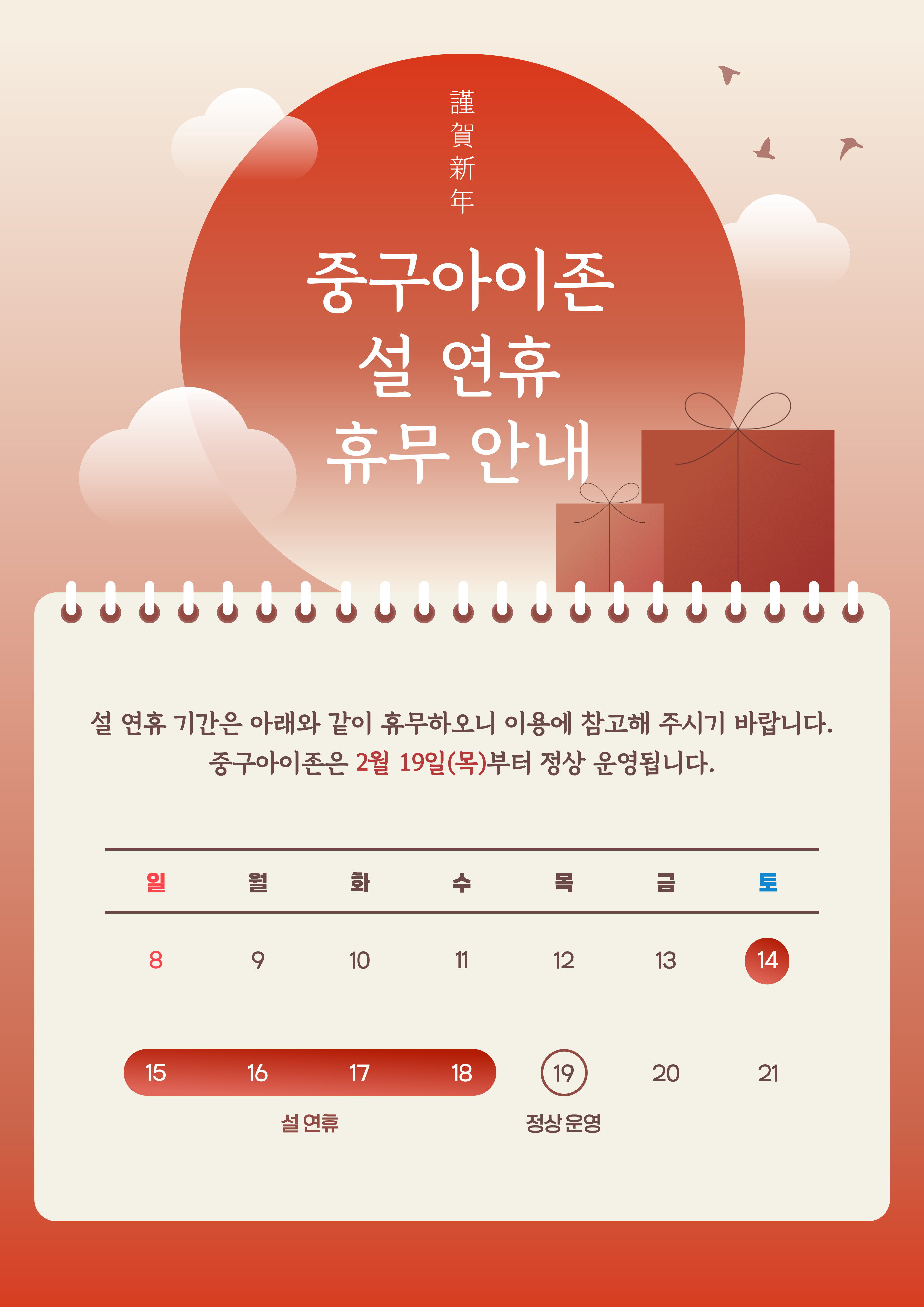 중구아이존 2026년 설 연휴 휴무 안내