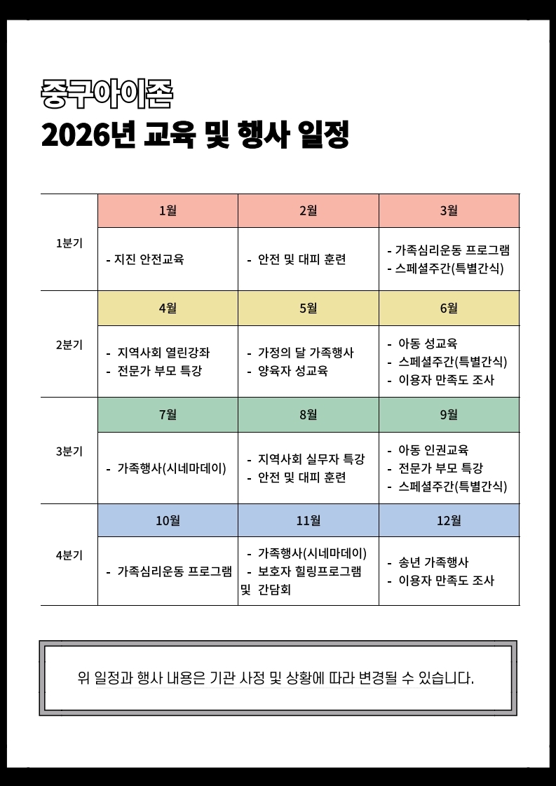 중구아이존 2026년 교육 및 행사 일정 안내