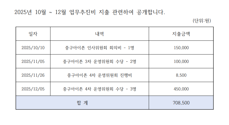 2025년 4분기(10월~12월) 업무추진비 공개